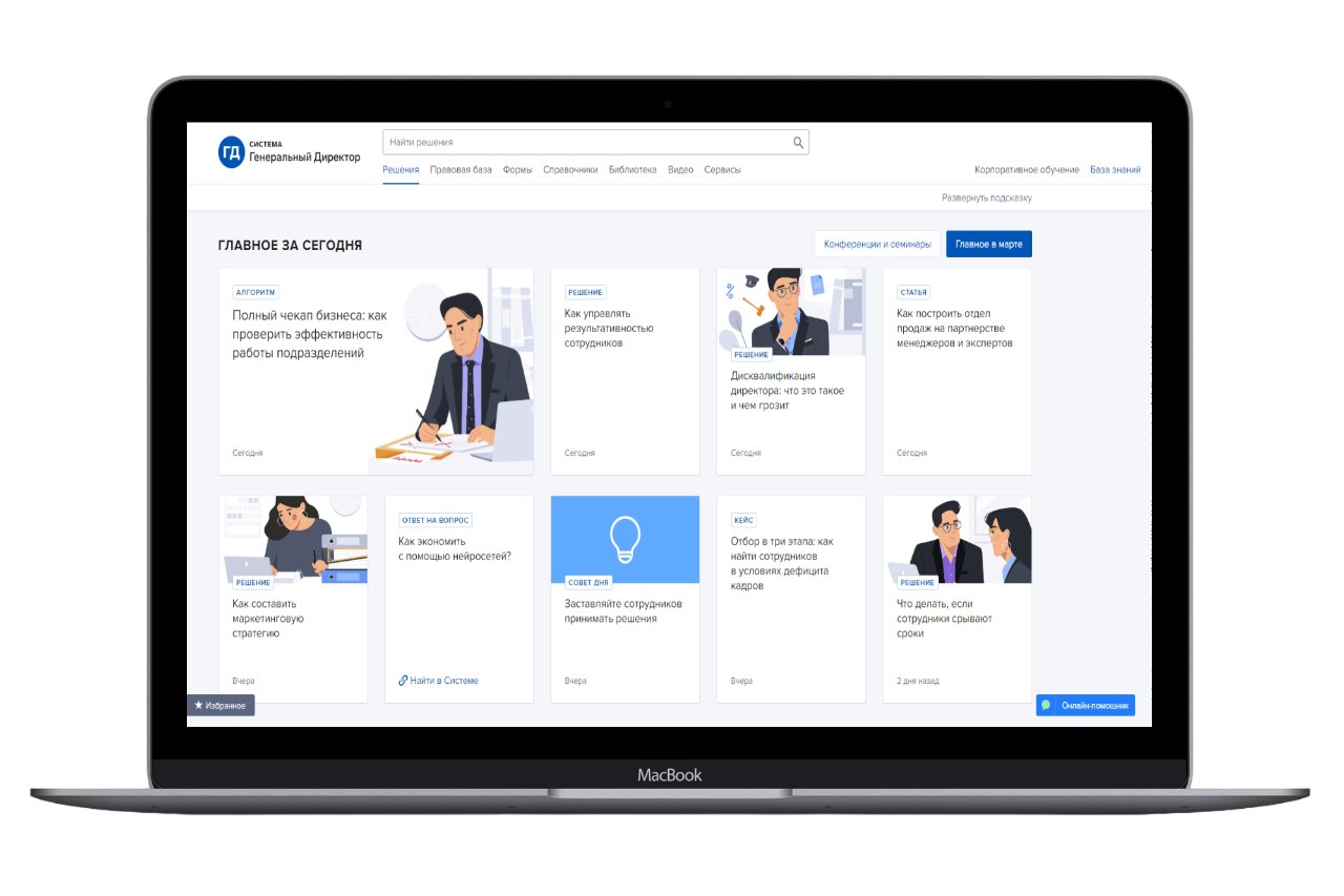 Генеральный директор - система, инновационный обстоятельный продукт, разработанный специально для развития малого и среднего бизнеса. Он разом объединяет множество полезных инструментов и ресурсов, способных помочь директорам эффективно управлять своими компаниями. Чтобы сберечь ваше время и облегчить рабочие процессы в вашем бизнесе, "Генеральный директор" предлагает доступ сверх 400 разнообразным формам, шаблонам, образцам, а также библиотеку, полную специализированных изданий, различные бизнес события, сервисы на разнообразные виды задач управляющего.